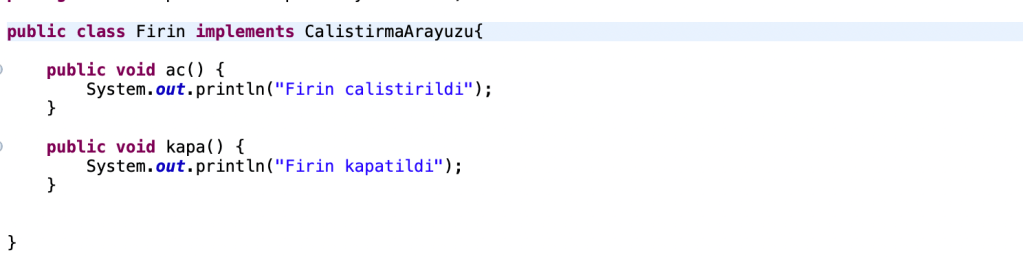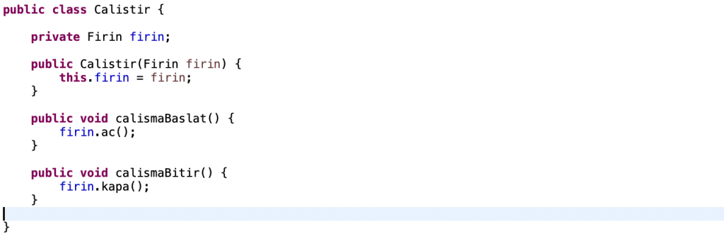 Evimizde kullandığımız cihazlar üzerinden gidelim. ‘Firin’ ve ‘Calistir’ isimli iki sınıfımız olsun.