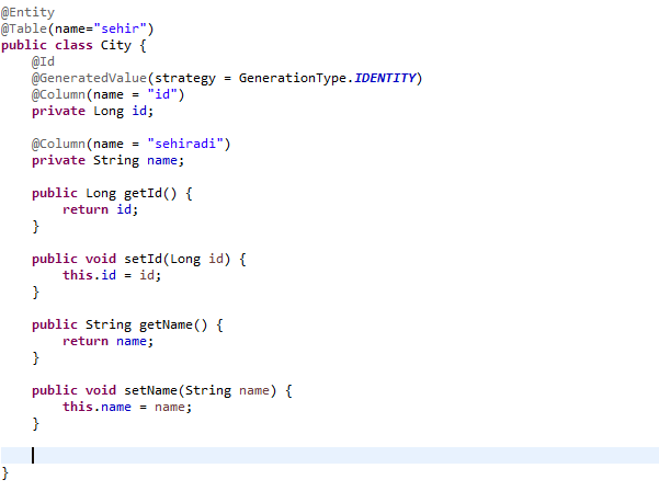 bir entity sınıfı oluşturalım.